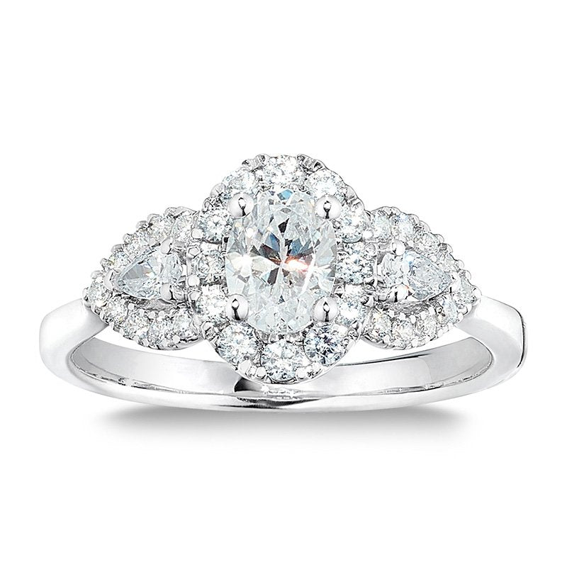 14k White Gold Victor Corp. 1.00ct, 3-stone, Oval and Pear-shaped Diamond Ring