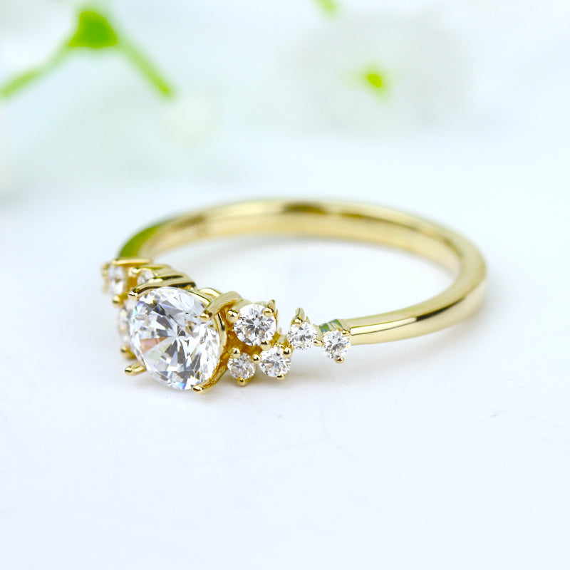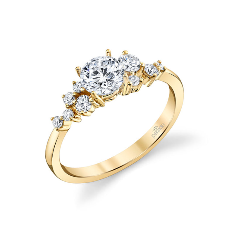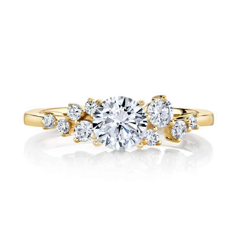 A sprinkling of mixed size diamonds creates this exceptional singular sparkle from the Hemera Bridal Collection. Stone Information: 09-RD 0.25. Available in Platinum, as well as 18K White, Yellow or Rose Gold.