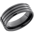 Black Ceramic 8mm flat band with beveled edges and 3, 1mm grooves. This beautiful product isn't always in stock. Our online inventory shows everything that we produce and some products need to be made from scratch along with vendor items that we don't produce. We will call or email letting you know if the piece is available or needs to be built along with if the product needs to be sized. Current estimated build times are between 6-8 weeks.