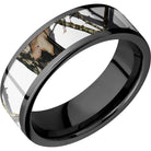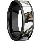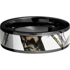Cobalt chrome 7mm flat band with a 5mm inlay of Mossy Oak Winter Break Up Camo. This beautiful product isn't always in stock. Our online inventory shows everything that we produce and some products need to be made from scratch along with vendor items that we don't produce. We will call or email letting you know if the piece is available or needs to be built along with if the product needs to be sized. Current estimated build times are between 6-8 weeks.
