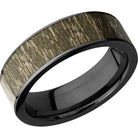Cobalt chrome 7mm flat band with a 6mm inlay of Mossy Oak Bottomland Camo. This beautiful product isn't always in stock. Our online inventory shows everything that we produce and some products need to be made from scratch along with vendor items that we don't produce. We will call or email letting you know if the piece is available or needs to be built along with if the product needs to be sized. Current estimated build times are between 6-8 weeks.