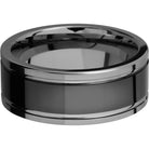 Tungsten and Ceramic 9mm flat band with grooves. This beautiful product isn't always in stock. Our online inventory shows everything that we produce and some products need to be made from scratch along with vendor items that we don't produce. We will call or email letting you know if the piece is available or needs to be built along with if the product needs to be sized. Current estimated build times are between 6-8 weeks.