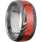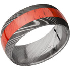 Handmade 9mm Damascus steel band with an inlay of exotic Padauk hardwood. This beautiful product isn't always in stock. Our online inventory shows everything that we produce and some products need to be made from scratch along with vendor items that we don't produce. We will call or email letting you know if the piece is available or needs to be built along with if the product needs to be sized. Current estimated build times are between 6-8 weeks.