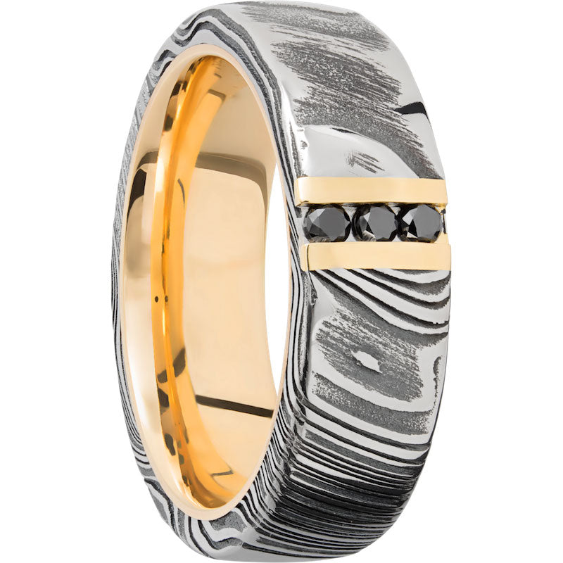 Lashbrook Black White & Yellow Damascus Steel Diamond 7mm Men's Wedding Band