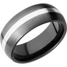 Zirconium 8mm domed band with an inlay of sterling silver. This beautiful product isn't always in stock. Our online inventory shows everything that we produce and some products need to be made from scratch along with vendor items that we don't produce. We will call or email letting you know if the piece is available or needs to be built along with if the product needs to be sized. Current estimated build times are between 6-8 weeks.