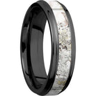 Zirconium 6mm flat band with grooved edges and a 3mm inlay of King's Snow Camo. This beautiful product isn't always in stock. Our online inventory shows everything that we produce and some products need to be made from scratch along with vendor items that we don't produce. We will call or email letting you know if the piece is available or needs to be built along with if the product needs to be sized. Current estimated build times are between 6-8 weeks.