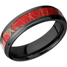Zirconium 6mm flat band with grooved edges and a 3mm inlay of Realtree APC Red Camo. This beautiful product isn't always in stock. Our online inventory shows everything that we produce and some products need to be made from scratch along with vendor items that we don't produce. We will call or email letting you know if the piece is available or needs to be built along with if the product needs to be sized. Current estimated build times are between 6-8 weeks.