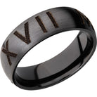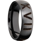 Zirconium 7mm domed band with laser-carved roman numerals. This beautiful product isn't always in stock. Our online inventory shows everything that we produce and some products need to be made from scratch along with vendor items that we don't produce. We will call or email letting you know if the piece is available or needs to be built along with if the product needs to be sized. Current estimated build times are between 6-8 weeks.