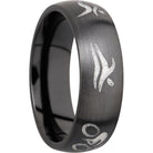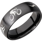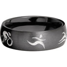 Zirconium 7mm domed band with a laser-carved triathlon pattern. This beautiful product isn't always in stock. Our online inventory shows everything that we produce and some products need to be made from scratch along with vendor items that we don't produce. We will call or email letting you know if the piece is available or needs to be built along with if the product needs to be sized. Current estimated build times are between 6-8 weeks.