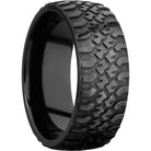 Zirconium 9mm domed band with a laser-carved truck pattern. This beautiful product isn't always in stock. Our online inventory shows everything that we produce and some products need to be made from scratch along with vendor items that we don't produce. We will call or email letting you know if the piece is available or needs to be built along with if the product needs to be sized. Current estimated build times are between 6-8 weeks.