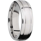 Cobalt chrome 7mm domed band with 2, .5mm grooves. This beautiful product isn't always in stock. Our online inventory shows everything that we produce and some products need to be made from scratch along with vendor items that we don't produce. We will call or email letting you know if the piece is available or needs to be built along with if the product needs to be sized. Current estimated build times are between 6-8 weeks.