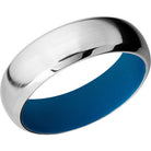Cobalt chrome 7mm domed band with beveled edges with a Sky Blue Cerakote sleeve. This beautiful product isn't always in stock. Our online inventory shows everything that we produce and some products need to be made from scratch along with vendor items that we don't produce. We will call or email letting you know if the piece is available or needs to be built along with if the product needs to be sized. Current estimated build times are between 6-8 weeks.
