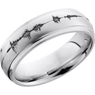 Cobalt chrome 7mm domed band with grooved edges and a laser-carved soundwave. This beautiful product isn't always in stock. Our online inventory shows everything that we produce and some products need to be made from scratch along with vendor items that we don't produce. We will call or email letting you know if the piece is available or needs to be built along with if the product needs to be sized. Current estimated build times are between 6-8 weeks.
