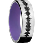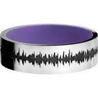 Cobalt chrome 7mm flat band with a laser-carved personalized soundwave and a Bright Purple Cerakote Sleeve. This beautiful product isn't always in stock. Our online inventory shows everything that we produce and some products need to be made from scratch along with vendor items that we don't produce. We will call or email letting you know if the piece is available or needs to be built along with if the product needs to be sized. Current estimated build times are between 6-8 weeks.