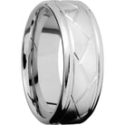 Cobalt chrome 8mm beveled band with laser-carved flatweave pattern. This beautiful product isn't always in stock. Our online inventory shows everything that we produce and some products need to be made from scratch along with vendor items that we don't produce. We will call or email letting you know if the piece is available or needs to be built along with if the product needs to be sized. Current estimated build times are between 6-8 weeks.