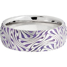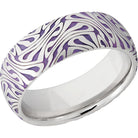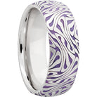 Cobalt chrome 8mm domed band with a laser-carved escher pattern featuring Bright Purple Cerakote in the recessed pattern. This beautiful product isn't always in stock. Our online inventory shows everything that we produce and some products need to be made from scratch along with vendor items that we don't produce. We will call or email letting you know if the piece is available or needs to be built along with if the product needs to be sized. Current estimated build times are between 6-8 weeks.