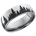 Cobalt chrome 8mm domed band with a laser-carved treeline pattern. This beautiful product isn't always in stock. Our online inventory shows everything that we produce and some products need to be made from scratch along with vendor items that we don't produce. We will call or email letting you know if the piece is available or needs to be built along with if the product needs to be sized. Current estimated build times are between 6-8 weeks.