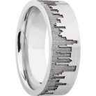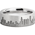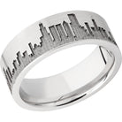 Cobalt chrome 8mm flat band with laser-carved Chicago skyline. This beautiful product isn't always in stock. Our online inventory shows everything that we produce and some products need to be made from scratch along with vendor items that we don't produce. We will call or email letting you know if the piece is available or needs to be built along with if the product needs to be sized. Current estimated build times are between 6-8 weeks.