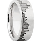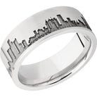 Cobalt chrome 8mm flat band with laser-carved Detroit skyline. This beautiful product isn't always in stock. Our online inventory shows everything that we produce and some products need to be made from scratch along with vendor items that we don't produce. We will call or email letting you know if the piece is available or needs to be built along with if the product needs to be sized. Current estimated build times are between 6-8 weeks.