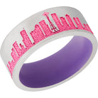 Cobalt chrome 8mm flat band with a laser-carved New York skyline featuring Pink Cerakote in the recessed pattern and Bright Purple Cerakote on the sleeve. This beautiful product isn't always in stock. Our online inventory shows everything that we produce and some products need to be made from scratch along with vendor items that we don't produce. We will call or email letting you know if the piece is available or needs to be built along with if the product needs to be sized. Current estimated build times are between 6-8 weeks.