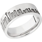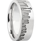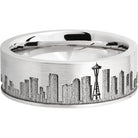 Cobalt chrome 8mm flat band with laser-carved Seattle skyline. This beautiful product isn't always in stock. Our online inventory shows everything that we produce and some products need to be made from scratch along with vendor items that we don't produce. We will call or email letting you know if the piece is available or needs to be built along with if the product needs to be sized. Current estimated build times are between 6-8 weeks.