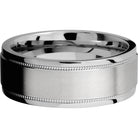 Cobalt chrome 8mm flat band with grooved edges and reverse milgrain detail. This beautiful product isn't always in stock. Our online inventory shows everything that we produce and some products need to be made from scratch along with vendor items that we don't produce. We will call or email letting you know if the piece is available or needs to be built along with if the product needs to be sized. Current estimated build times are between 6-8 weeks.