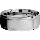Cobalt chrome 8mm flat band with grooved edges and reverse milgrain detail. This beautiful product isn't always in stock. Our online inventory shows everything that we produce and some products need to be made from scratch along with vendor items that we don't produce. We will call or email letting you know if the piece is available or needs to be built along with if the product needs to be sized. Current estimated build times are between 6-8 weeks.