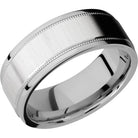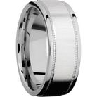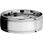 Cobalt chrome 8mm flat band with grooved edges and reverse milgrain detail. This beautiful product isn't always in stock. Our online inventory shows everything that we produce and some products need to be made from scratch along with vendor items that we don't produce. We will call or email letting you know if the piece is available or needs to be built along with if the product needs to be sized. Current estimated build times are between 6-8 weeks.
