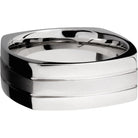 Cobalt chrome 8mm flat square band with 2, .5mm grooves. This beautiful product isn't always in stock. Our online inventory shows everything that we produce and some products need to be made from scratch along with vendor items that we don't produce. We will call or email letting you know if the piece is available or needs to be built along with if the product needs to be sized. Current estimated build times are between 6-8 weeks.