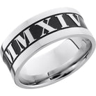 Cobalt chrome 9mm flat band with laser-carved roman numerals. This beautiful product isn't always in stock. Our online inventory shows everything that we produce and some products need to be made from scratch along with vendor items that we don't produce. We will call or email letting you know if the piece is available or needs to be built along with if the product needs to be sized. Current estimated build times are between 6-8 weeks.