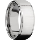 Cobalt chrome 9mm flat band with grooved edges. This beautiful product isn't always in stock. Our online inventory shows everything that we produce and some products need to be made from scratch along with vendor items that we don't produce. We will call or email letting you know if the piece is available or needs to be built along with if the product needs to be sized. Current estimated build times are between 6-8 weeks.