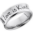 Cobalt chrome 8mm concave band with beveled edges and a laser-carved handwritten message. This beautiful product isn't always in stock. Our online inventory shows everything that we produce and some products need to be made from scratch along with vendor items that we don't produce. We will call or email letting you know if the piece is available or needs to be built along with if the product needs to be sized. Current estimated build times are between 6-8 weeks.
