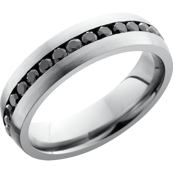 Titanium 6mm domed band with .04ct channel-set eternity black diamonds. This beautiful product isn't always in stock. Our online inventory shows everything that we produce and some products need to be made from scratch along with vendor items that we don't produce. We will call or email letting you know if the piece is available or needs to be built along with if the product needs to be sized. Current estimated build times are between 6-8 weeks.