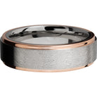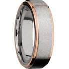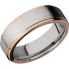 Cobalt chrome 7mm flat band with grooved edges and 14K rose gold edges. This beautiful product isn't always in stock. Our online inventory shows everything that we produce and some products need to be made from scratch along with vendor items that we don't produce. We will call or email letting you know if the piece is available or needs to be built along with if the product needs to be sized. Current estimated build times are between 6-8 weeks.
