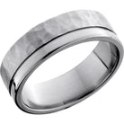 Titanium 7mm flat band with an off-center .5mm groove. This beautiful product isn't always in stock. Our online inventory shows everything that we produce and some products need to be made from scratch along with vendor items that we don't produce. We will call or email letting you know if the piece is available or needs to be built along with if the product needs to be sized. Current estimated build times are between 6-8 weeks.