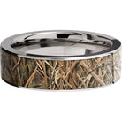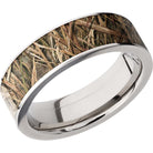 Titanium 7mm flat band with a 6mm inlay of Mossy Oak SG Blades Camo. This beautiful product isn't always in stock. Our online inventory shows everything that we produce and some products need to be made from scratch along with vendor items that we don't produce. We will call or email letting you know if the piece is available or needs to be built along with if the product needs to be sized. Current estimated build times are between 6-8 weeks.