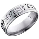 Titanium 7mm flat band with grooved edges and a laser-carved wave pattern. This beautiful product isn't always in stock. Our online inventory shows everything that we produce and some products need to be made from scratch along with vendor items that we don't produce. We will call or email letting you know if the piece is available or needs to be built along with if the product needs to be sized. Current estimated build times are between 6-8 weeks.