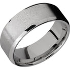 Titanium 8mm beveled band. This beautiful product isn't always in stock. Our online inventory shows everything that we produce and some products need to be made from scratch along with vendor items that we don't produce. We will call or email letting you know if the piece is available or needs to be built along with if the product needs to be sized. Current estimated build times are between 6-8 weeks.