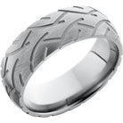 Titanium 8mm domed band with a laser-carved cycle pattern. This beautiful product isn't always in stock. Our online inventory shows everything that we produce and some products need to be made from scratch along with vendor items that we don't produce. We will call or email letting you know if the piece is available or needs to be built along with if the product needs to be sized. Current estimated build times are between 6-8 weeks.