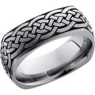 Titanium 8mm domed square band with a laser-carved celtic pattern. This beautiful product isn't always in stock. Our online inventory shows everything that we produce and some products need to be made from scratch along with vendor items that we don't produce. We will call or email letting you know if the piece is available or needs to be built along with if the product needs to be sized. Current estimated build times are between 6-8 weeks.