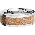 Titanium 8mm flat band with a mosaic inlay of tan dinosaur bone. This beautiful product isn't always in stock. Our online inventory shows everything that we produce and some products need to be made from scratch along with vendor items that we don't produce. We will call or email letting you know if the piece is available or needs to be built along with if the product needs to be sized. Current estimated build times are between 6-8 weeks.