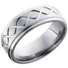Titanium 8mm flat band with grooved edges and a laser-carved tall infinity pattern. This beautiful product isn't always in stock. Our online inventory shows everything that we produce and some products need to be made from scratch along with vendor items that we don't produce. We will call or email letting you know if the piece is available or needs to be built along with if the product needs to be sized. Current estimated build times are between 6-8 weeks.