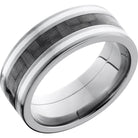 Titanium 8mm flat band with a 3mm inlay of black Carbon Fiber and 2, 1mm inlays of Sterling Silver. This beautiful product isn't always in stock. Our online inventory shows everything that we produce and some products need to be made from scratch along with vendor items that we don't produce. We will call or email letting you know if the piece is available or needs to be built along with if the product needs to be sized. Current estimated build times are between 6-8 weeks.