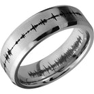 Cobalt chrome 7mm beveled band with a laser-carved soundwave. This beautiful product isn't always in stock. Our online inventory shows everything that we produce and some products need to be made from scratch along with vendor items that we don't produce. We will call or email letting you know if the piece is available or needs to be built along with if the product needs to be sized. Current estimated build times are between 6-8 weeks.