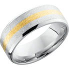 Cobalt chrome 8mm beveled band with a 14K yellow gold inlay. This beautiful product isn't always in stock. Our online inventory shows everything that we produce and some products need to be made from scratch along with vendor items that we don't produce. We will call or email letting you know if the piece is available or needs to be built along with if the product needs to be sized. Current estimated build times are between 6-8 weeks.