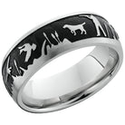 Cobalt chrome 8mm domed band with a laser-carved duck hunt pattern. This beautiful product isn't always in stock. Our online inventory shows everything that we produce and some products need to be made from scratch along with vendor items that we don't produce. We will call or email letting you know if the piece is available or needs to be built along with if the product needs to be sized. Current estimated build times are between 6-8 weeks.