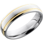 Cobalt chrome 6mm domed band with 14K Yellow Gold reverse milgrain detail. This beautiful product isn't always in stock. Our online inventory shows everything that we produce and some products need to be made from scratch along with vendor items that we don't produce. We will call or email letting you know if the piece is available or needs to be built along with if the product needs to be sized. Current estimated build times are between 6-8 weeks.