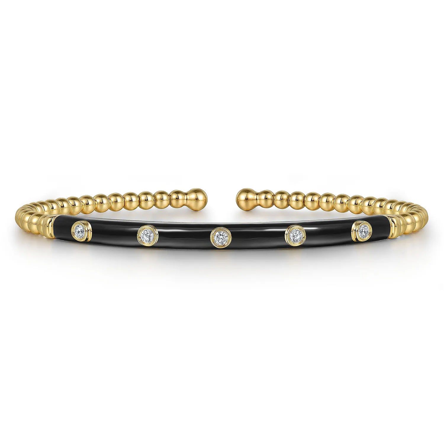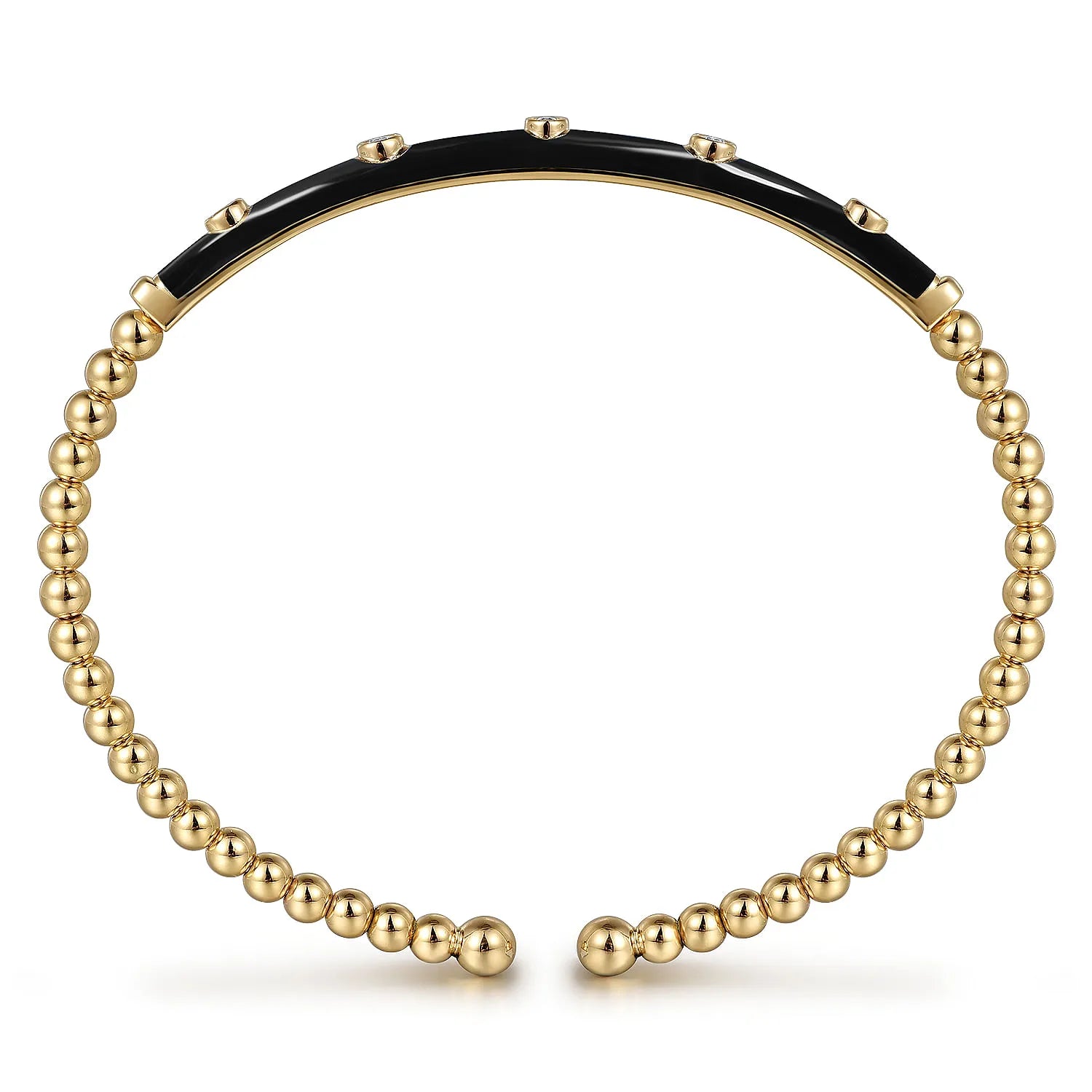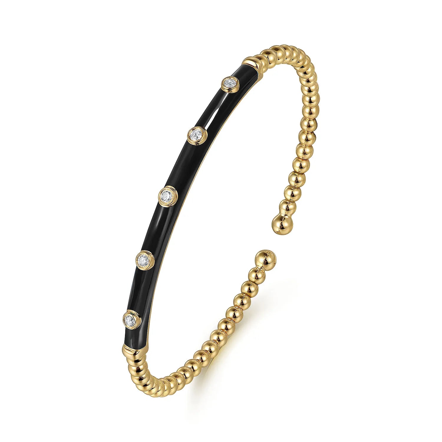 Gabriel & Co. Fashion 14k Yellow Gold Bujukan Beads and Diamond Split Bangle with Black Enamel