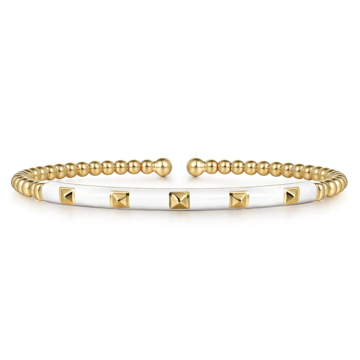 Gabriel & Co. Fashion 14k Yellow Gold Bujukan Beads and Pyramid Split Bangle with White Enamel