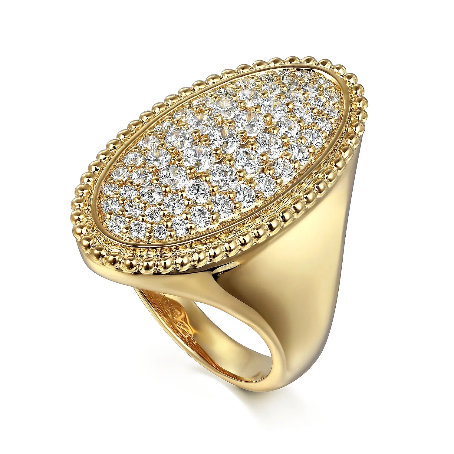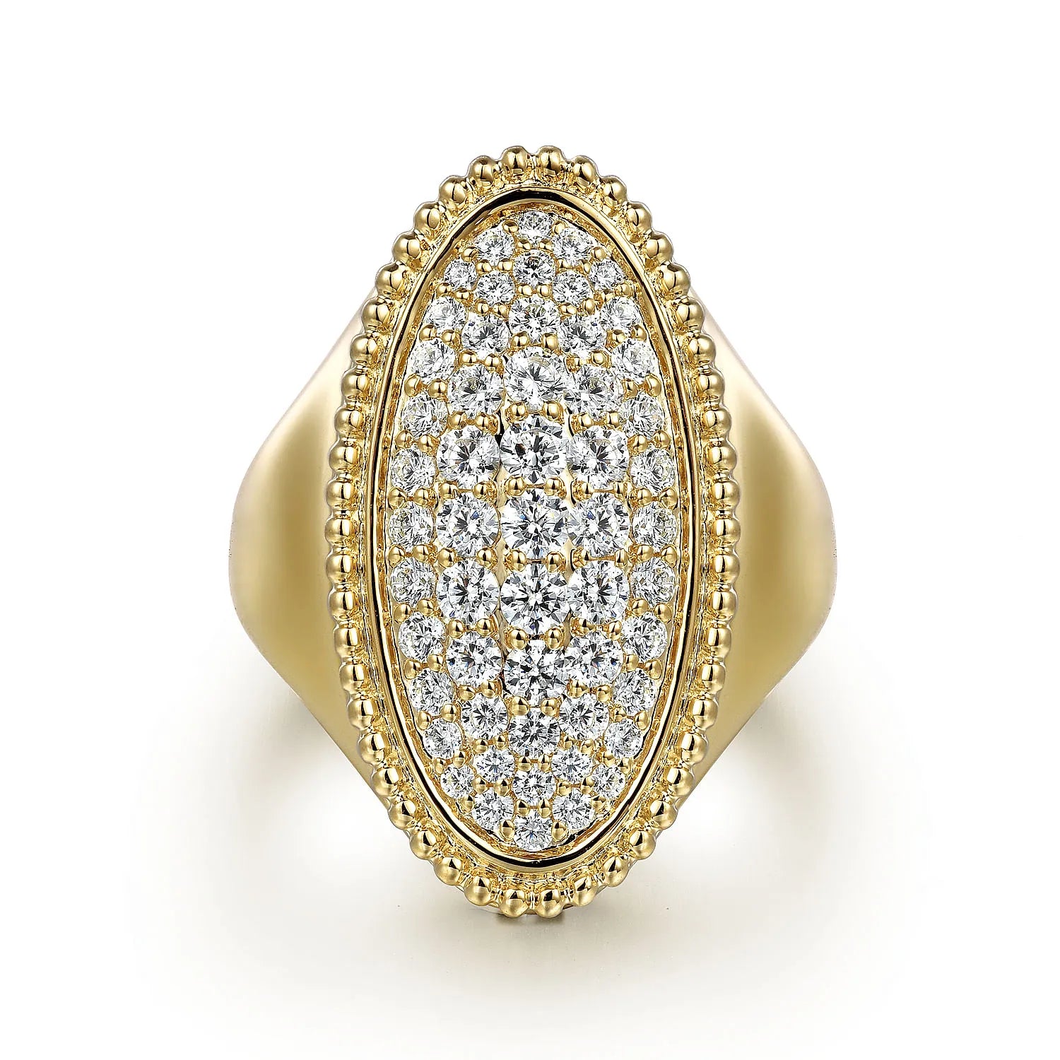 Gabriel & Co. Fashion 14k Yellow Gold Bujukan Diamond Elongated Oval Signet Ring